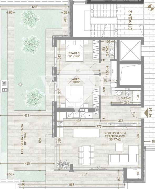 • дневна с трапезария и кухненски бокс