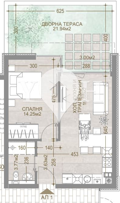 • дневна с трапезария и кухненски бокс
